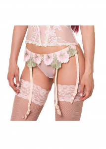 Пояс для чулок со средней посадкой. Состоит из четырех длинных держателей для чулок с пластиковыми клипсами, декорированных атласной лентой.