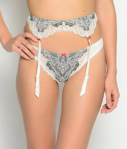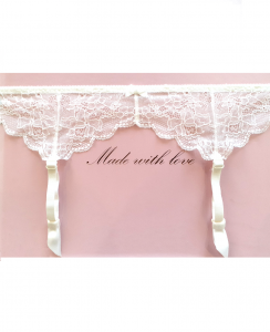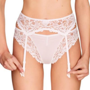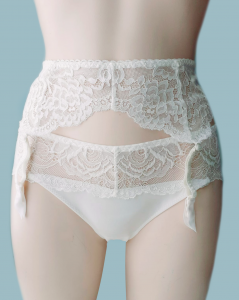 Пояс для чулок со средней посадкой. Состоит из четырех длинных держателей для чулок с пластиковыми клипсами, декорированных атласной лентой.