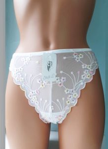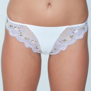 Трусы – стринг со средней линией талии, выполнены из эластичного полотна, ластовица дублирована хлопком.