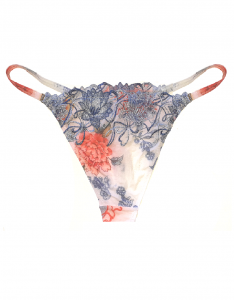 Трусы – стринг со средней линией талии, выполнены из эластичного полотна, ластовица дублирована хлопком.