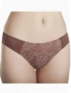 Трусы – стринг с заниженной линией талии, выполнены из эластичного полотна и эластичного кружева, ластовица дублирована хлопком.