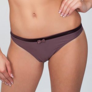 Трусы – стринг с заниженной линией талии, выполнены из эластичного полотна и эластичного кружева, ластовица дублирована хлопком.