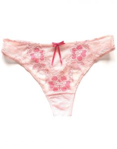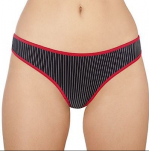 Трусы – стринг со средней линией талии, выполнены из эластичного полотна, ластовица дублирована хлопком.