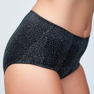 Трусы с высокой линией талии, выполнены из эластичного полотна, ластовица дублирована хлопком.