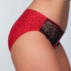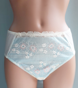 Трусы со средней линией талии, выполнены из эластичного полотна и эластичного кружева. Ластовица дублирована хлопком.