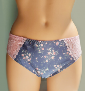 Трусы со средней линией талии, выполнены из эластичного полотна и эластичного кружева. Ластовица дублирована хлопком.