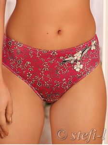 Трусы с высокой линией талии, выполнены из эластичного полотна, ластовица дублирована хлопком.