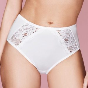 Трусы со средней линией талии, выполнены из эластичного полотна и эластичного кружева. Ластовица дублирована хлопком.